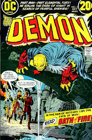 Kirby had used the yellow/red combination with Mister Miracle, he too having a yellow "face". But, Kirby seemed to always be the direct kind of guy - Yellow/red are the obvious symbolic colours of fire and sulphur, so even the most casual reader would subconsciously understand the visual metaphor. The Demon sometimes looks too cute, not scary enough, Captain Marvel-like (Shazam variety).