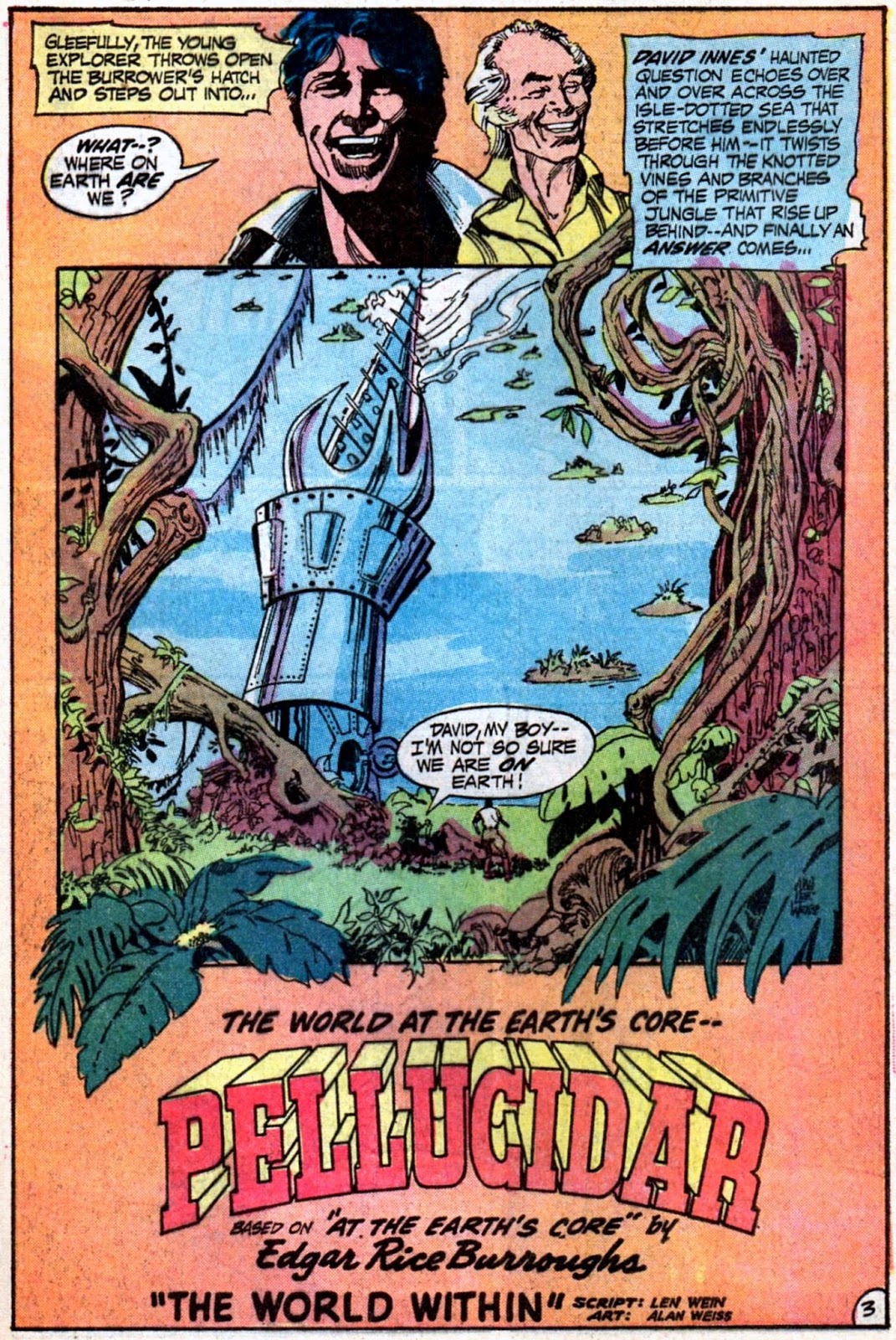 I remember buying this in the local grocery store....seems like it was late spring. I had been reading DC's adaptation of Tarzan (and the John Carter back-up) for a few months, so I eagerly snatched this one up. I remember reading all of these over the summer. I was not familiar with any of ERB's other works, so it was exciting to read about John Carter, David Innes, and Carson Napier, too.....almost as much as it was to read about Tarzan and Korak. I ended up tracking down the related books for each as well as many of the Tarzan series.
