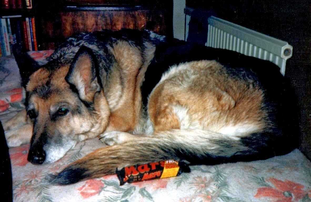 The scratches had been caused by not just one dog, but three. First, PRINCE, a mongrel we'd owned back in the early '70s that looked almost like a 'miniature' German Shepherd; then TARA, an actual German Shepherd we owned from around the mid-'70s to 1986. Finally, ZARA (another German Shepherd), who I'd bought to replace Tara when her time had come to an end earlier in the same year.