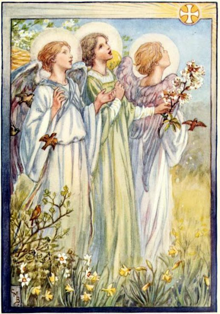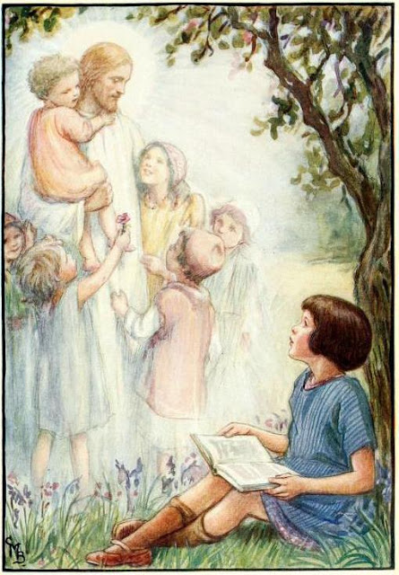 Anyway - back at CM Barker's pics... I'm particularly fond of that 3rd one of the Angelic Chorus. Also most fitting for a book of hymns. (And not at all because it was the 3rd illustration in the set) Her use of soft golds and muted blues works beautifully. After that one, it's her pics of the children that i like best, and it's easy to see how they trigger such ruminations for you.